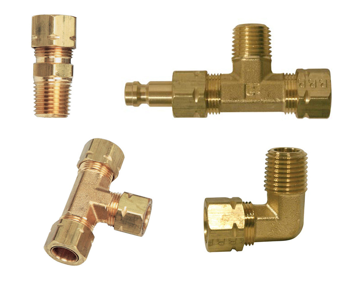 Brass accessories and fittings for Ultraflex hydraulic steering systems.