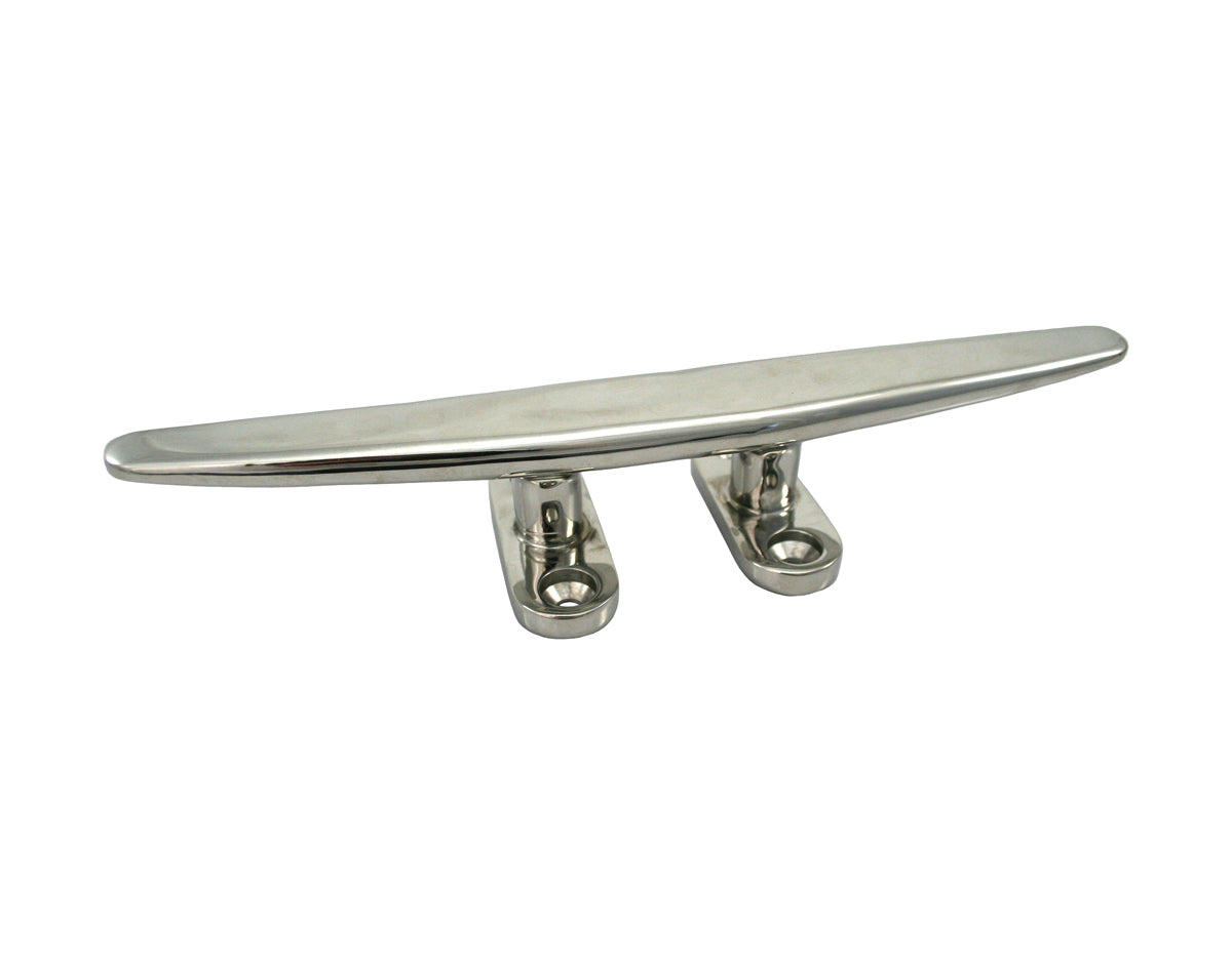 Cast 316 grade stainless steel low profile cleat. Corrosion resistant, open base deck cleat with four hole mounting positions.