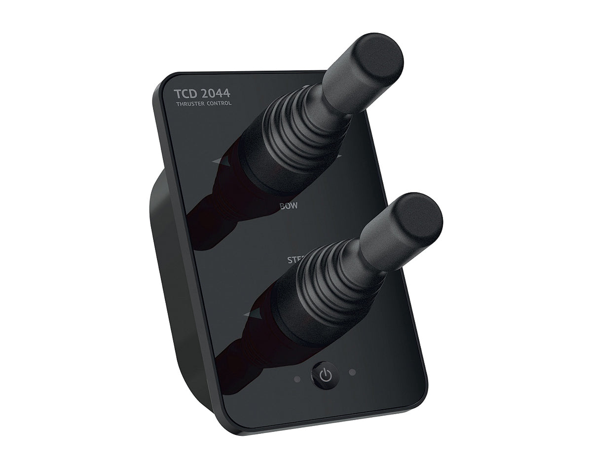 The TDC 2044 remote controls has double joysticks for operating two BTQ thrusters (bow and stern), features a special scratch resistant glossy lexan panel and has been designed to control the Quick® stern or bow thrusters.