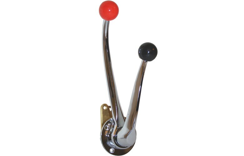 Single action chrome boat engine controls in side mount configuration with dual levers. Suitable for most standard brands of engine control cables.