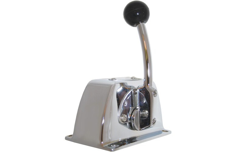 Single action chrome engine controls in top mount configuration with single lever. Suitable for most standard brands of engine control cables.