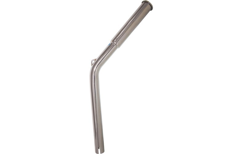 Stainless Steel (316g) gimbal lock rod holder extension. Ideal for boats where straight/vertical hold holders are installed. Used to extend (450mm) & angle rod over side or stern. Locks into standard standless steel rod holders. with bore size 38mm or greater.