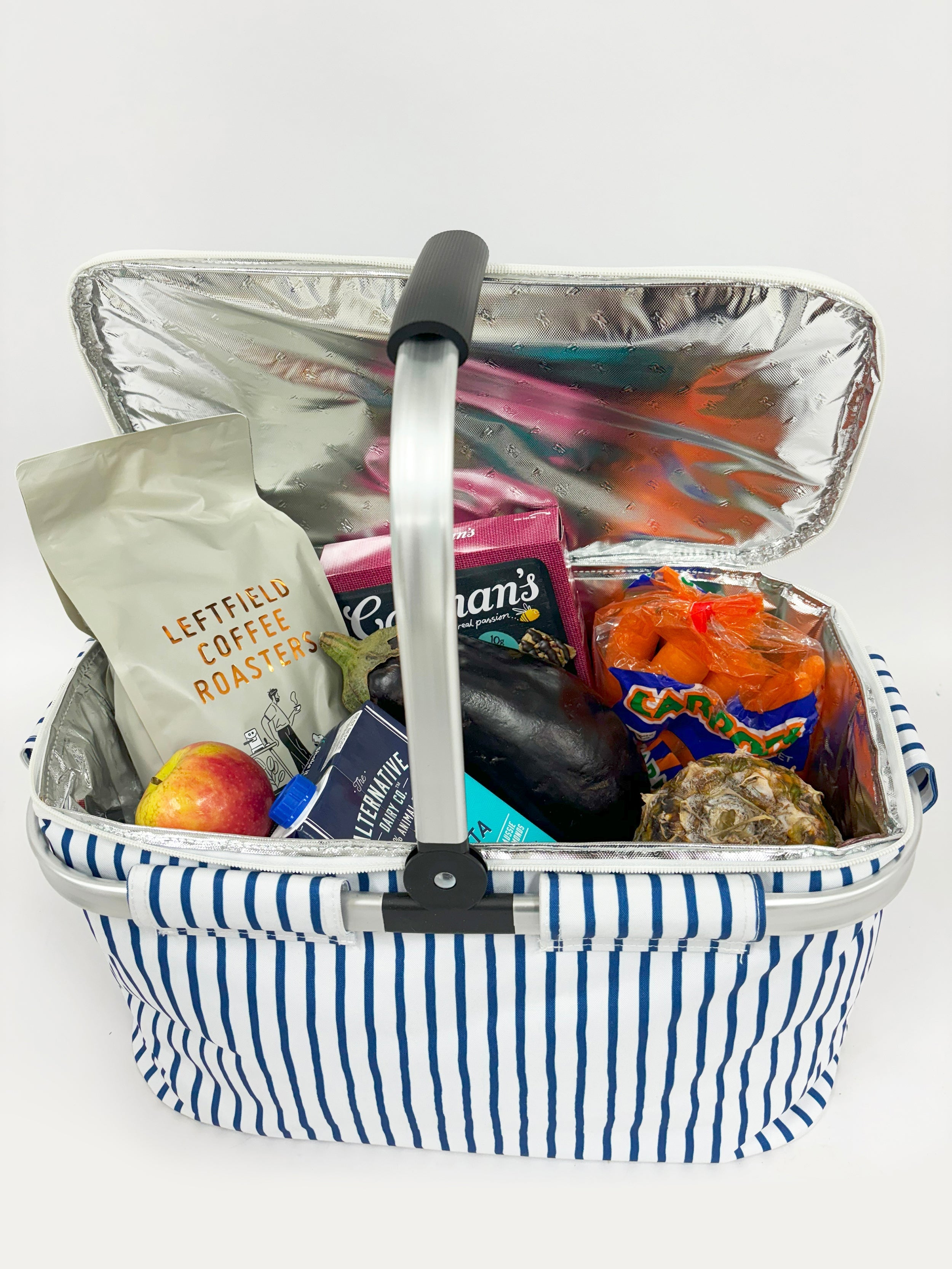 Good Vibes™ Insulated Market Cooler Bag, Aluminium Frame, Fully Zipped, Collapsible - Mediterranean