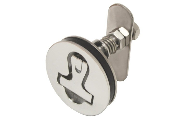 Cast 316-grade stainless steel round latch for floor mounted hatches, with concealed fastenings via a plate below deck.