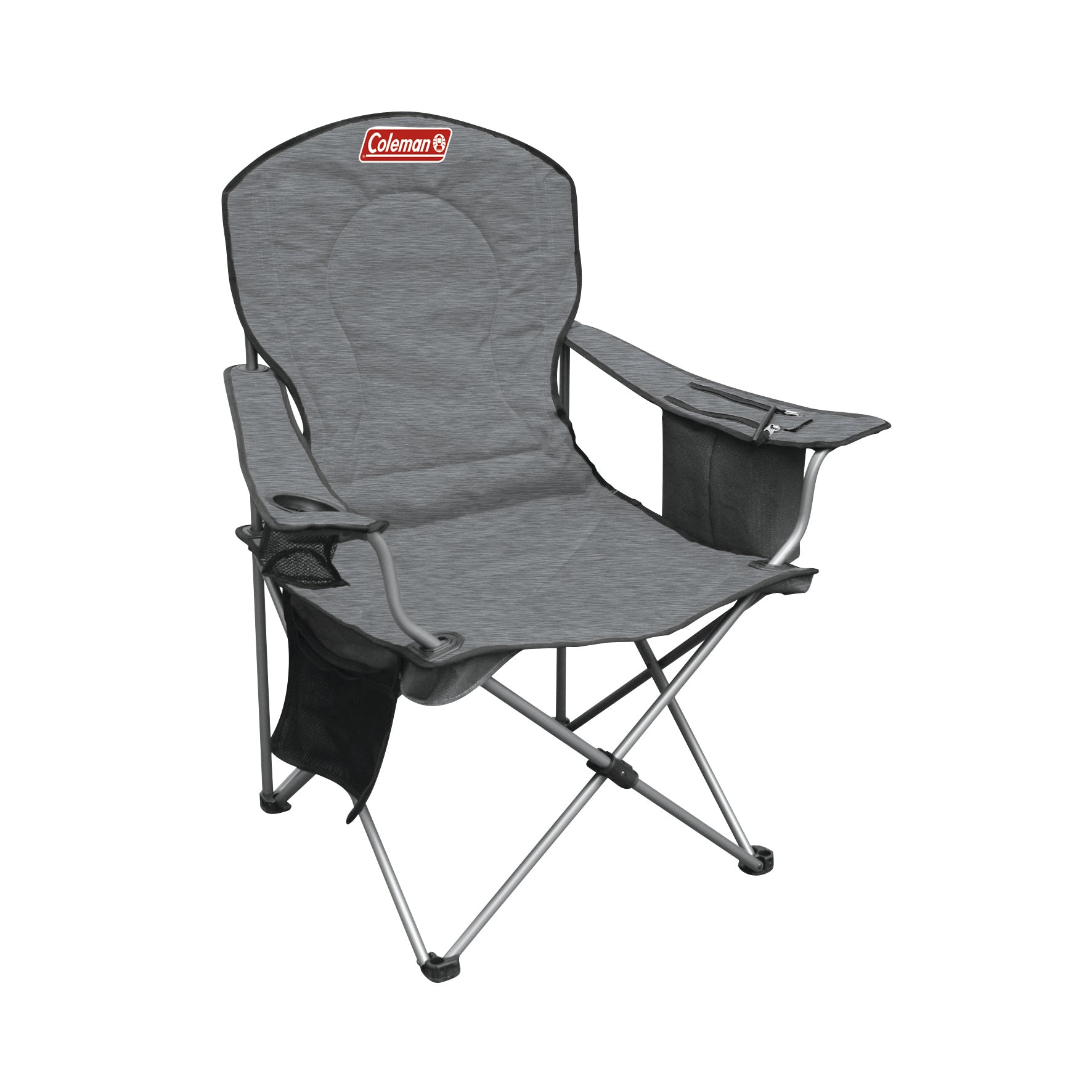 Sit back and relax with a cold one in hand in the Coleman Deluxe Cooler Heather Chair. It features a built-in cooler and mesh drink holder, which let you keep your favourite beverage within easy reach.