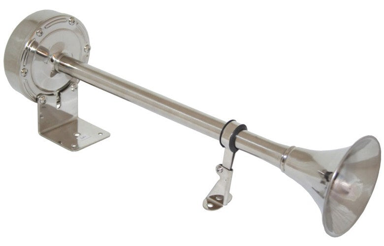Marine quality single trumpet horns with 100% stainless steel exterior. Sound rating : 110 decibels sound rating