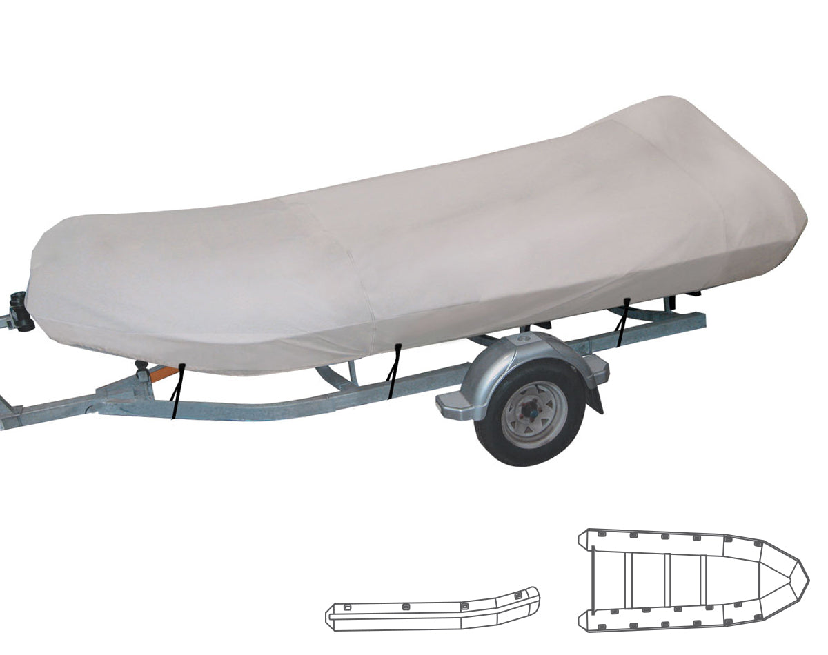 Designed to fit inflatable boats with low consoles and their outboard motors, the full cut at the rear allows ample room to cover an outboard motor and the semi-custom fitted bow provides a smoother fit.