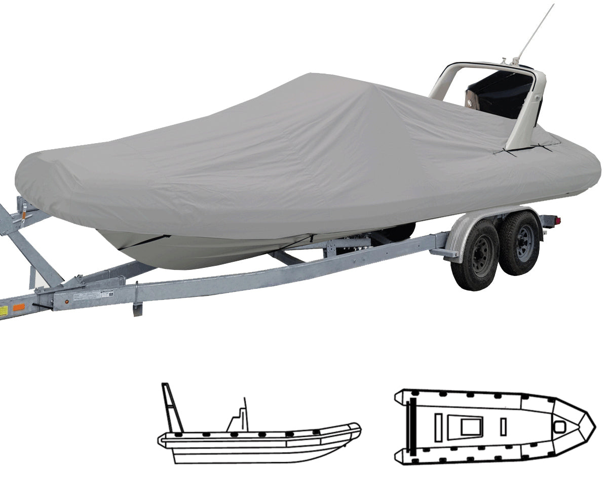 Designed to fit rib boats with center consoles and includes rear openings for rear arches. Ideal for winter or long-term storage, trailerable and suitable for highway towing.