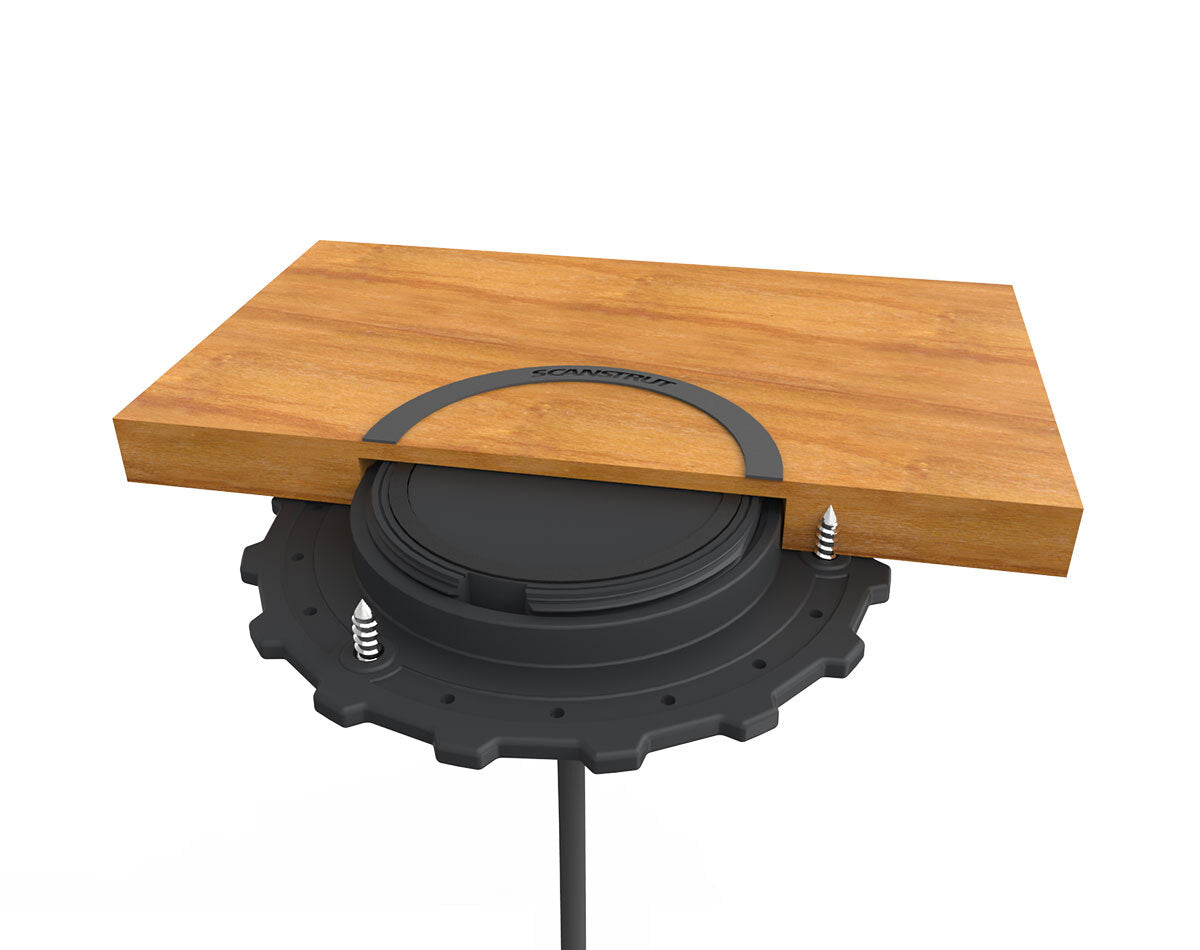 This wireless charger is engineered to be installed under the surface and leave the top surface un-cluttered and looking perfect