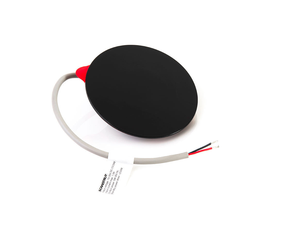 Completely hidden charger engineered to bond underneath & wirelessly charge through all non-metallic materials; GRP, fabric, leather, wood, carbon fiber, and all leading marine traction products.