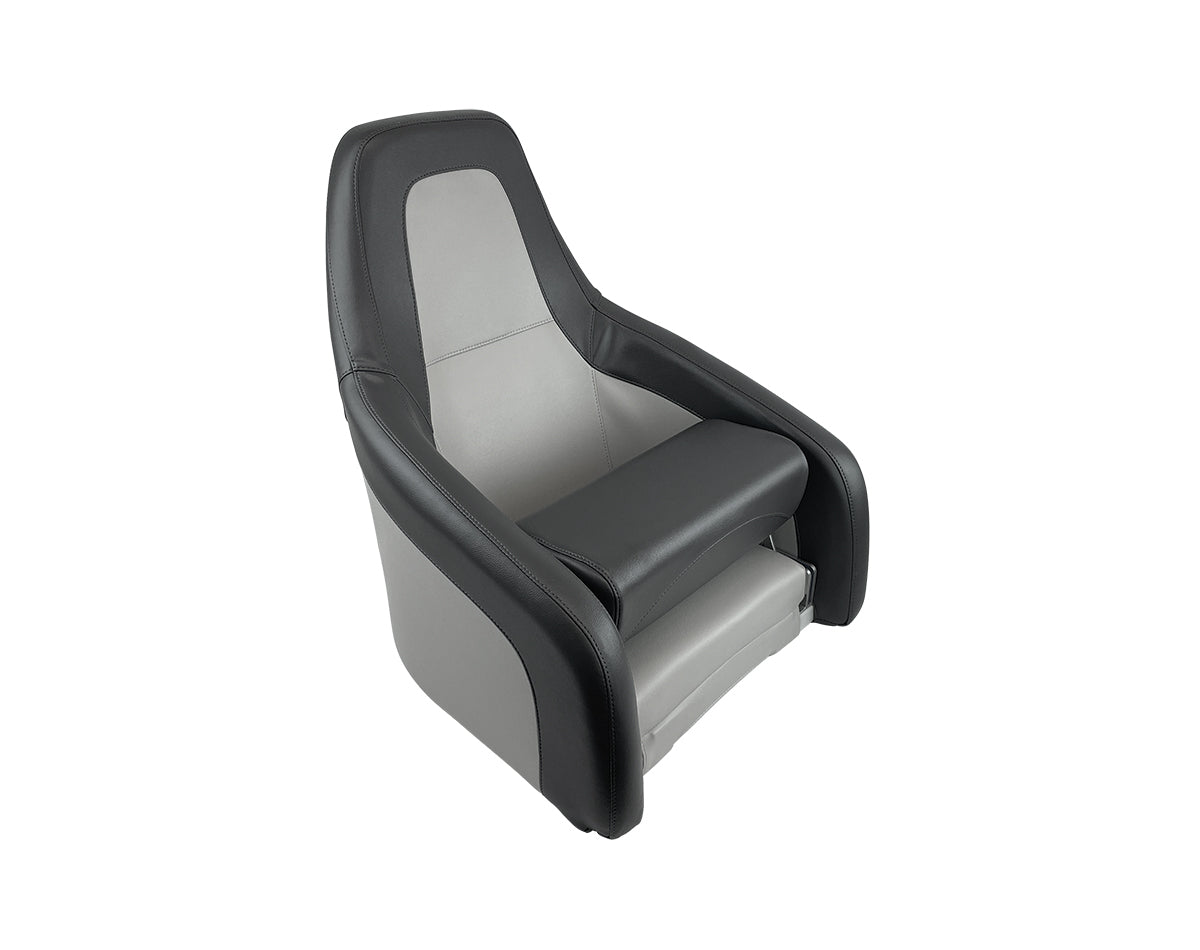 The HM51 is a compact bucket style seat with a handy built-in elastic storage pocket at the back and hinged front bolster cushion that lifts and folds up.