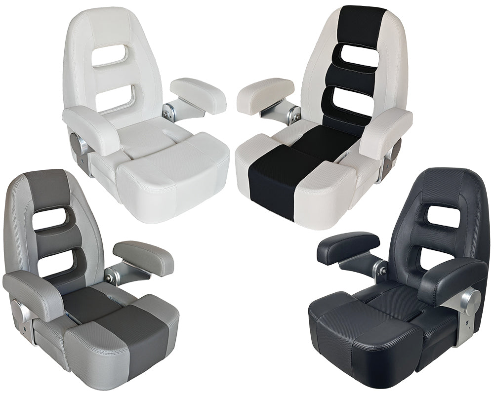 This flip-up seat is made with marine-grade UV stabilised upholstery and stitching, suitable for all marine environments.