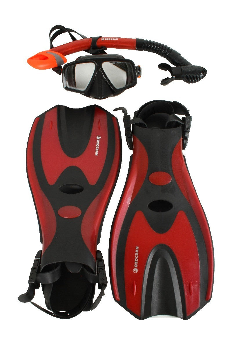 The Abrolhos Adults Mask, Fin and Snorkel set is available in Black and Grey and comes with a Silicon mouthpiece and facial skirt for added comfort and fit. It has adjustable buckles and straps on both the mask and fins as well to ensure a comfortable fitting
