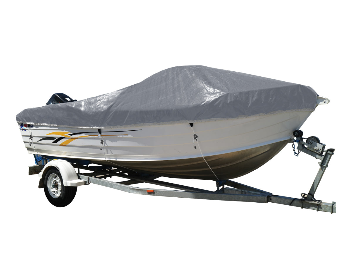 Oceansouth Universal Boat Storage and Towing Cover made from extra strong 160g/m2 PE Tarpaulin fabric, with an opening for an anchor and twin rope cleat for easy tightening.