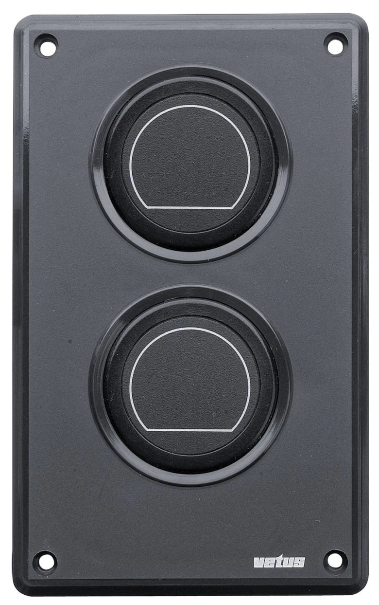 The panel is designed to receive two VETUS instruments with a cut-out diameter of 52mm.
