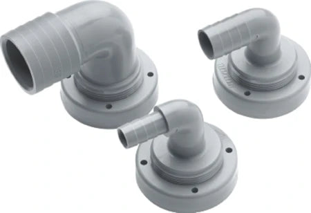 Angled synthetic fitting for rigid tanks. Suitable for hoses with an internal diameter of 13mm.