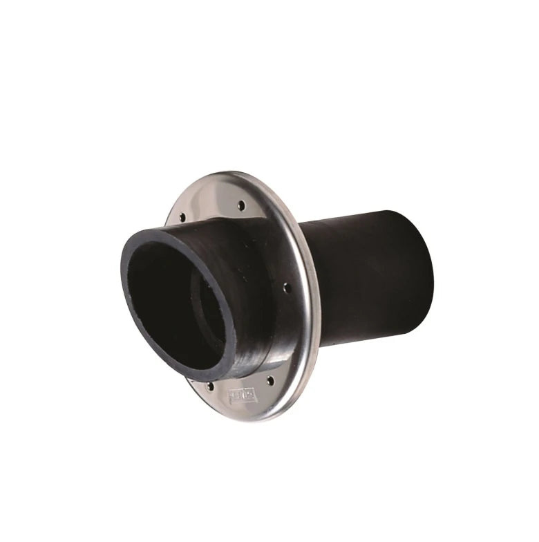 Transom exhaust connection in EPDM rubber with high-gloss polished stainless steel mounting ring. Can be mounted to...