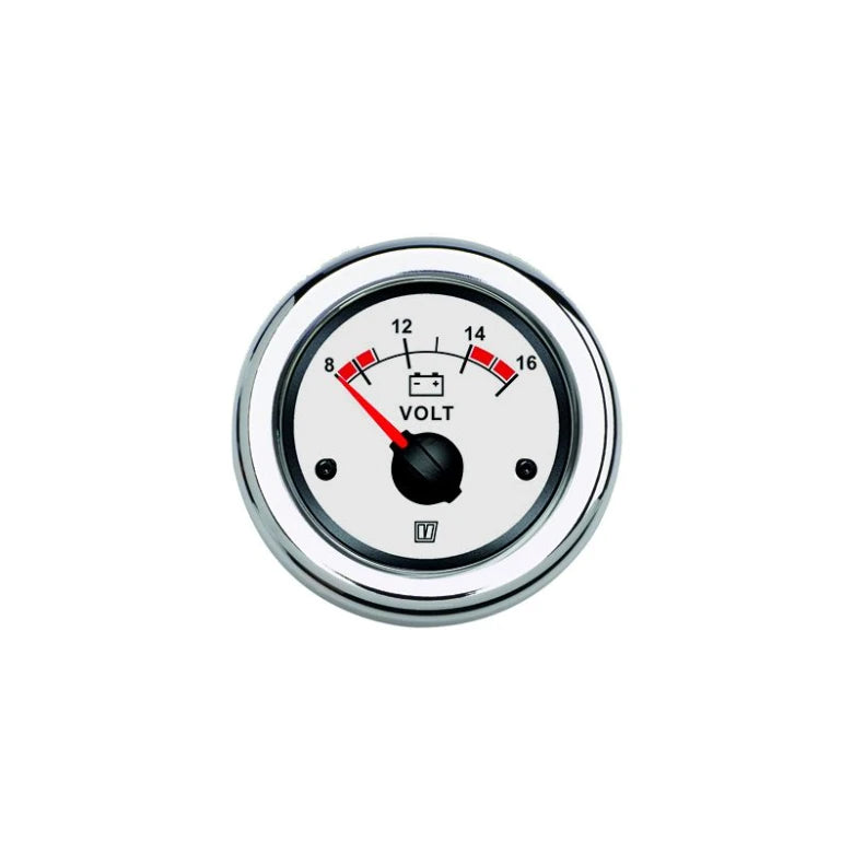 VETUS Voltmeter, white, 12 V (10-16 V), cut-out size Ø 52 mm VLT12W